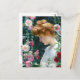 Eine Kunstpostkarte mit dem Gemälde von Charles Courtney Curran (1861-1942), einem amerikanischen Impressionisten, Hollyhocks und Sunlight (1902). Ein Porträt einer jungen Frau mit einem Aura-Haar, umgeben von roten, rosa und weißen Blume.