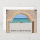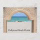 Blick auf den Ozean vom Hollywood Beach Florida Broadwalk auf einer touristischen Postkarte. Durch ein Fenster in der Wand entlang der Promenade blickt man auf den Sandstrand und die verschiedenen Farbtöne von blauem Wasser und Himmel. Die Stühle sind farbenfroh. Es gibt Platz für zusätzlichen Text mit in das Fenster im Sand. Das ist eine originelle Küstenfotografie von JLW_FOTOGRAFIE.