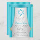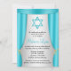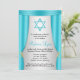 Elegant Hollywood themed Bat Mitzvah Einladungen. Mit aquamarinen blauen Vorhängen und einem Aqua Star von David. Ideal für Ihr Hollywood-Motto Bat Mitzvah Party!