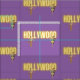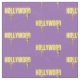 Das Fun-Stoff-Muster zeigt Hollywood in Neontext mit zwei Vintagen Foto-Ausschnitten auf lila Hintergrund