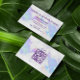 Erstellen Sie für einen Yoga-Instruktor oder ein anderes ganzheitliches Feld Ihre eigenen Visitenkarten aus holografischem Marmor. Die Hauptfarben sind Aqua, Minze und lila mit königlich lila Text. Behalte oder löscht den QR-Code auf der Rückseite.. oder passt ihn für einen anderen Zweck an, z.B. für eine URL in den sozialen Medien.