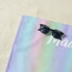 Mit diesem wunderschönen Handtuch in Pastellfarben, in Rosa, Blau, Gelb, Grün und lila, verleihen Sie Ihrem Strand oder Ihrem Schwimmbecken eine ganz besondere Note. Beispieltext kann leicht geändert werden, um es zu einem eigenen zu machen, oder Sie können wählen, um Text ganz zu entfernen und nur das Design behalten. Dieses Handtuch wird ein ausgezeichnetes Geschenk für den Strandliebhaber in Ihrem Leben. Für mehr tolle Produkte und Designs, bitte besuchen Sie meinen Shop hier auf Zazzle und folgen Sie mir für neue Produktaktualisierungen. Vielen Dank für Ihr Interesse an SapphireDesigns!