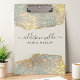 Fügen Sie mit dieser holografischen Glitzer-Zwischenablage eine Touch Glamour zu Ihrem Arbeitsbereich hinzu, die über einen eleganten Script-Schriftart für ein elegantes und personalisiertes Aussehen verfügt. Diese individuell gestaltete Zwischenablage eignet sich ideal für Profis der Beauty-, Haar- und Wellness-Branche und bietet Stil und Funktionalität. Das stilvolle Accessoire eignet sich perfekt für die Organisation mit Flair und sorgt für eine moderne, luxuriöse Touch.