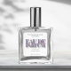 Ein weiße Etikett für Parfümflaschen mit dem Aufdruck "Eau de Parfum" im holografischen Glitzer und Platz für Ihren Firmennamen, Produktsortiment und Produktgröße.