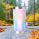Holografischer Hintergrund in Rosa, lila und Minzgrün. Mit Konfetti dekoriert. Personalisieren und fügen Sie Ihren Namen und einen Text hinzu (oder löschen Sie ihn, wenn er nicht gewollt ist)