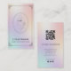 Erhöhen Sie Ihre Marke mit dieser luxuriösen holografischen Visitenkarte für Floristik- und Wellness-Studios, die elegante, minimalistische Linienkunst und ein modernes QR-Code-Design enthält. Der weiche, irisierende Pastellverlauf erzeugt eine feminine, hochwertige und Boutique-Ästhetik, die perfekt für kreative Unternehmer ist.