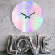 Holografisches Einhorn-Glitzer-Regenbogenmonogramm Große Wanduhr