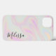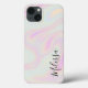 Moderne holografische Elegant Iridescent Rainbow Name iPhone Case. Personalisieren Sie das Programm mit einem Schriftart mit Signaturskript. Ein angesagter, ästhetischer Holohintergrund.