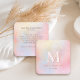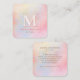 Die Holographic Blush Pink Modern Monogram Square Business Card ist glänzend und poliert. Sie besticht durch einen weichen Pastelltimmer und ein minimalistisches Layout mit individuell anpassbarem Initial. Die subtilen Blütenfarben und die glänzende Oberfläche schaffen eine raffinierte, feminine Ästhetik - perfekt für Stylist, Schönheitsprofis, Wellness-Marken und Unternehmer, die gewollt sind, ihre Marke mit Eleganz und Persönlichkeit auszudrücken.