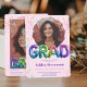 Feiern Sie den Absolventen stilvoll mit diesem lebendigen und modernen holografischen Ballon, der Abschluss Einladung. Dieses lustige und festliche Design mit zwei individuell gestaltbaren Foto-Spots ist mit schimmernden Konfetti und auffälligen Ballontexten geschmückt, die Zauber "GRAD" in metallischen Regenbogentönen. Die abgerundeten Kanten verleihen der Touch eine elegante Note, während die Mischung aus spielerischer und mutiger Typografie sie zu einer hervorragenden Wahl für alle Highschool- oder Uni-Abschluß-Feiern macht. Ideal für die Ankündigung des großen Meilensteins mit einem lustigen und dynamischen Ambiente! Auf rosa Hintergrund