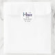 Dieser schicke Dankeschön-Aufkleber enthält das Wort "Hair" in Neon Glitzer auf der Vorderseite und hat Platz für Ihren Namen und Ihre Social Media-Informationen.
