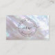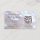 This elegant luxury business card features an iridescent peony mother-of-pear design and your monogram in an elegant handwritten script. The monogram, together with a circle and your name and profession in a sans serif font, are creating a logo. On the reverse side is a scannable qr code and a custom template for name, address and socials. This professional glam business card is perfect for salon, make up artists, jewelry and more.