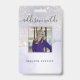 Holographic Lila Glitzer Luxury Glam Business ID Abzeichen. Dieses Design zeichnet sich durch ein klassisches Schriftart-Set im Stil einer klassischen Signatur-Kalligraphie vor einem wunderschönen, modernen, glänzenden, glänzenden lila lila Hintergrund aus. Ideal für einen Schönheitssalon, Haarstylistin, Makeup-Künstler, Nageltechniker, Lasertechniker oder Kosmetologe.