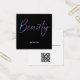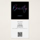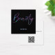 Eine elegante Visitenkarte mit dem Wort "Schönheit" auf der Vorderseite im holografischen Neon-Glitzer mit Platz auf der Rückseite für Ihren Namen und Kontaktinformationen. Dieses Design enthält einen QR-Code auf der Rückseite.