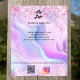 Personalisieren Sie Ihr Firmenlogo, Ihren Namen, Ihre Adresse, Ihren Text, Ihren eigenen QR-Code und fügen Sie ihn Ihrem Instragentenkonto hinzu. Rosa, lila, blau, holografischer Untergrund mit Konfetti.