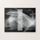 Celebrate faith and artistry with this 252-piece jigsaw puzzle featuring a grayscale dove in flight, a radiant cross, and the powerful vertical message “Jesus Saves.” Centered with stylized “Holy Bible” script and framed by ornate flourishes, this design blends spiritual symbolism with elegant detail — perfect for devotional reflection or heartfelt gifting.