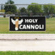 Eine Illustration einer angelikalen Cannoli, begleitet den Slogan HOLY CANNOLI.
