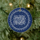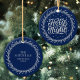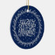 Holy Night Blue Silver Script Elegante Keepake Keramik Ornament