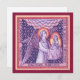 Dieses wunderbare, einzigartige Bild stammt aus einer holländischen heiligen Karte aus dem Jahr 1918, die an einen verstorbenen Ehemann und eine gestorbene Ehefrau erinnert. Die Inschrift lautet "Der Standardträger, Heiliger Michael, bringen sie ins heilige Licht". Der Hintergrund ist mit Sternen und Blume geschmückt, mit einem phantastischen Cloud-Design, das über dem Bild von Saint Michael schwebt. Die Abbildung wurde in neuen Farben gekleidet und auf eine quadratische Form zugeschnitten.