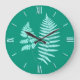 Holz-Fern-Muster, Türkis und Aqua Große Wanduhr