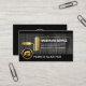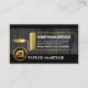 Eine exquisite graue Holzabdeckung ist durch schwarze Streifen an den oberen und unteren Rändern der Karte eingekapselt. Hier befindet sich ein goldener Pinsel, der als Plakat für die Kartendetails fungiert. Ganz oben finden Sie den Firmennamen, die Kontaktdaten und einen Slogan, mit dem Sie Ihre Dienstleistungen bekannt machen können. In der Nähe der Basis, ist ein goldenes Zuhause-Landschaftslogo, das Sie neben Ihrem renommierten Namen verwenden können.