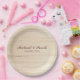 Die holzgearbeitete Papierplatte ist mit einem hellbraunen Holzkorn-Hintergrund versehen. © Morning 6