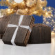 Dunkelbraune Holzstruktur rustikale Stil Geschenkverpackung. Geschenkpapier aus Holz