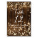 Holz Rustikales String Lights Weiße Tischnummer Schild - Dieses elegante, braune Holz und weiße Tischdekor mit hübschen Lichtern der Saite und weißer Blüte kann mit Ihren Hochzeitsinformationen personalisiert werden. Sie müssen die Nummer jedes Mal löschen und die Nummer schreiben, die Sie brauchen, dann fügen Sie diese Tischnummer in Ihren Warenkorb und wiederholen Sie diese für jede Tischnummer, die Sie gewollt haben, sonst haben Sie die gleiche Tischnummer unnötig multipliziert.