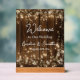 Begrüßungsschild aus Holz Rustikal Weiße Blumenstrauß - Dieses elegante, braune Holz und ein weißes Begrüßungsschild mit hübschen Lichtern aus der Saite und weißer Blüte können mit Ihren Hochzeitsinformationen personalisiert werden. (das Erzeugnis ist nicht tatsächlich aus Holz hergestellt)