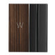 Schönes iPad Folio Gehäuse, mit Grafik eines braunen Holzkornaussehens, das in der Mitte des Gehäuses läuft. Ein schwarzes metallisches Aussehen, sowohl an den vorderen als auch an den hinteren Kanten, hat ein silbernes Tonband als Rahmen. Personalisieren Sie das Monogramm mit einem Buchstaben auf der Vorderseite, um Ihre Bedürfnisse zu Anzug. Gute Geschenkidee