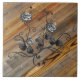 Diagonale Holzlatten in Braun- und Witterungsgrau mit Rose in Grautönen.