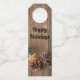 Holzboden mit Kiefernzapfen Flaschenanhänger