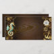Brauner Holzboden mit Meer, mechanischer Rücken, antikes Lenkrad, goldener Anker und verschiedene Gold- und Messinggetrieben. Steampunkstil.