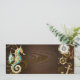 Brauner Holzboden mit Meer, mechanischer Rücken, antikes Lenkrad, goldener Anker und verschiedene Gold- und Messinggetrieben. Steampunkstil.