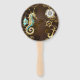 Brauner Holzboden mit Meer, mechanischer Rücken, antikes Lenkrad, goldener Anker und verschiedene Gold- und Messinggetrieben. Steampunkstil.