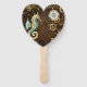 Brauner Holzboden mit Meer, mechanischer Rücken, antikes Lenkrad, goldener Anker und verschiedene Gold- und Messinggetrieben. Steampunkstil.