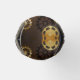 Brauner Holzboden mit Meer, mechanischer Rücken, antikes Lenkrad, goldener Anker und verschiedene Gold- und Messinggetrieben. Steampunkstil.
