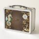 Holzboden mit mechanischem Seepferd Metall Brotdose