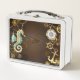 Holzboden mit mechanischem Seepferd Metall Brotdose