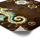 Brauner Holzboden mit Meer, mechanischer Rücken, antikes Lenkrad, goldener Anker und verschiedene Gold- und Messinggetrieben. Steampunkstil.