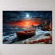 Holzboot am Meer Poster