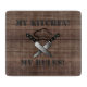 Dieses Design ist mit einem Hintergrund aus Holzeffekten mit einer Grafik von zwei Schneidmesser und einem Hut eines Koch in der Mitte ausgestattet. Über der Grafik Staaten es "My Kitchen" und unter "Meine Regeln" in einem SchablonenSchriftart. Der Text kann so geändert werden, dass er Ihren eigenen Anforderungen Anzug.