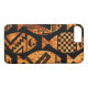 Ureinwohner-Fisch-Muster mit hölzernem Korn auf schwarzem Hintergrund.