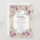 Malvenfarbene Blumen- und Blätter betont einen natürlichen hölzernen Hintergrund. Ein untertriebenes Kreuz schmückt die Spitze der Einladung.