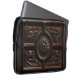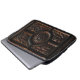 Diese Laptophülse wird mit einem flachen Bild eines schönen künstlerischen Holzes verziert, das in den Schatten des Brauns, des Goldes, des Mahagonibaumes und des Schwarzen schnitzt. Ein zentrales abstraktes KreisBlumenbild hat Blumenblätter, zu einem geschnitzten Kreis heraus auszustrahlen, der durch vier Abschnitte umgeben wird. Jeder Abschnitt hat abstrakte Blatt Carvings. Das Bild ist, also realistisch scheint es dreidimensional.