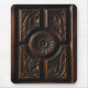 Dieses mousepad wird mit einem Bild eines schönen künstlerischen Holzes verziert, das in den Schatten des Brauns, des Goldes, des Mahagonibaumes und des Schwarzen schnitzt. Ein zentrales abstraktes KreisBlumenbild hat Blumenblätter, zu einem geschnitzten Kreis heraus auszustrahlen, der durch vier Abschnitte umgeben wird. Jeder Abschnitt hat abstrakte Blatt Carvings.