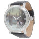 Uhr, Klassische Damenuhr mit schwarzen Lederarmband