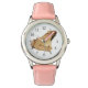 Kinderuhr aus Edelstahl mit rosa Lederarmband