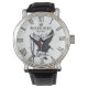 Uhr, Klassische Damenuhr mit schwarzen Lederarmband