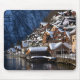 Foto-Mousepad mit den Fassaden der Holzhäuser am Hallstätter See im Winter in Hallstatt, Österreich.